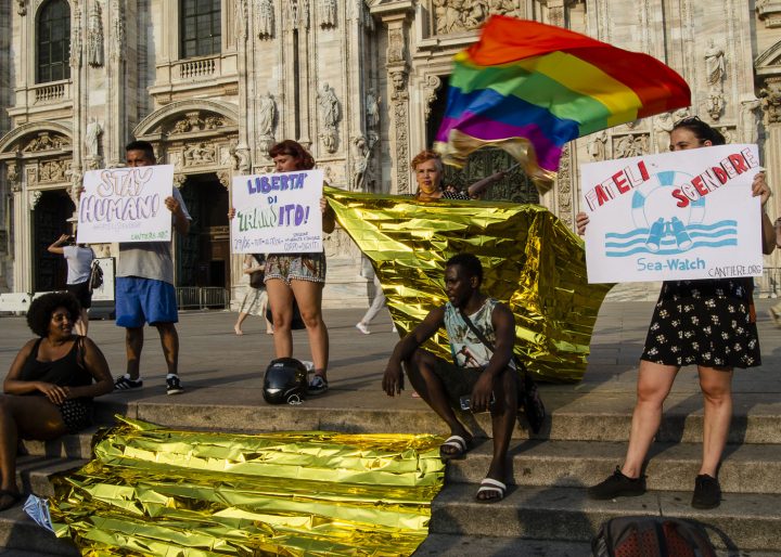 Riceviamo e volentieri pubblichiamo, da varie fonti, diverse iniziative a sostegno della Sea Watch a fronte di quanto sta accadendo in queste ore: la capitana della nave ha deciso di forzare il blocco e sta sbarcando a Lampedusa, e i toni di Salvini diventano sempre più violenti e volgari. Presidi in favore dei migranti della Sea Watch stanno inoltre avendo luogo in varie città italiane. Nella gallery alcune foto del presidio di Milano che al grido di “lasciateli scendere!” e “Non si tocca Carola!” hanno manifestato tutta la loro solidarietà.
