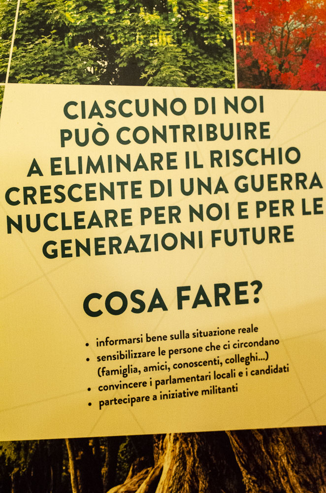 Altri attivisti di Varese e Torino raccontano esperienze di coordinamento tra associazioni anche molto diverse tra loro per fare pressione sulle istituzioni perché approvino mozioni sul disarmo. Si insiste anche sull’importanza del lavoro nelle scuole (e in questo senso il documentario può essere un ottimo strumento di sensibilizzazione e informazione) e di mostre fotografiche come quella dei Disarmisti Esigenti e della WILPF presente all’incontro.