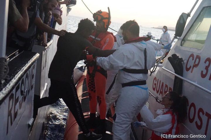 La maggior parte dei migranti salvati dalla Open Arms è ancora a bordo della nave, ferma a poche centinaia di metri dal porto di Lampedusa, ma negli ultimi giorni l’abituale, inumana gestione dei salvataggi in mare e degli sbarchi ha visto qualche cambiamento.