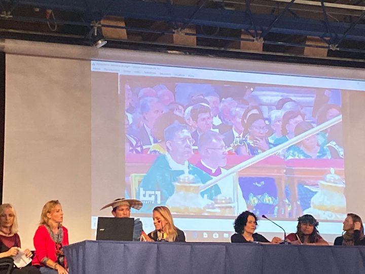 Si inizia con i video curati da Antonio Pacor del Collettivo FocusPuller, con le immagini dei leader indigeni arrivati in Europa in occasione del Sinodo per l’Amazzonia voluto da Papa Francesco e con quelle degli incendi – 95.000 in otto mesi – che hanno devastato il polmone verde del pianeta.