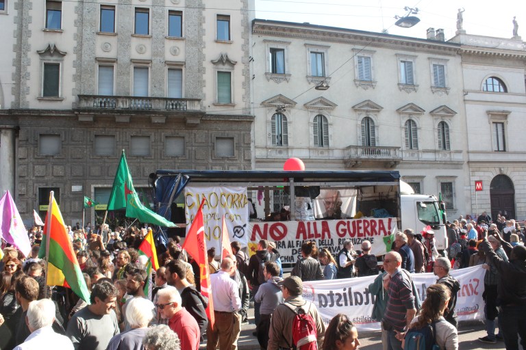 Nel pomeriggio di sabato 26 ottobre, oltre cinquemila persone (molti i/le giovani) hanno attraversato Milano per manifestare la propria solidarietà con la popolazione curda in Rojava, vessata dalla guerra che l’esercito turco sta ingaggiando per sopprimere la rivoluzione. Si estende e si rafforza la solidarietà alle vittime di Erdogan anche se non tutte le organizzazioni sindacali e politiche che avevano partecipato alla manifestazione del 14 ottobre hanno aderito all’iniziativa.