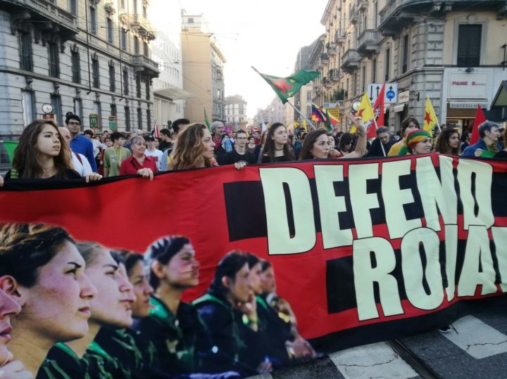 Nel pomeriggio di sabato 26 ottobre, oltre cinquemila persone (molti i/le giovani) hanno attraversato Milano per manifestare la propria solidarietà con la popolazione curda in Rojava, vessata dalla guerra che l’esercito turco sta ingaggiando per sopprimere la rivoluzione. Si estende e si rafforza la solidarietà alle vittime di Erdogan anche se non tutte le organizzazioni sindacali e politiche che avevano partecipato alla manifestazione del 14 ottobre hanno aderito all’iniziativa.