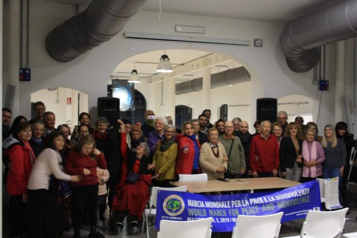 Dopo una breve pausa, costituita da una merenda equosolidale (offerta da Gim Terre di Lago, la Banca del Tempo di Luino, le associazioni Aurora, Aisu, Costruttori di Lago e Dsa)  si è passati alla presentazione della Seconda Marcia Mondiale per la Pace e la Nonviolenza, che, partita il 2 ottobre scorso da Madrid, toccherà tutti i continenti del pianeta ed arriverà a Varese e nell’Alto Verbano il 1° marzo 2020. Di seguito è stato proiettato il toccante documentario “L’inizio della fine delle armi nucleari” di Pressenza, un auspicio ed una speranza, oltreché una necessità e una spinta per i governanti di tutti i paesi che ancora non hanno ratificato il Trattato di Proibizione delle Armi Nucleari.
