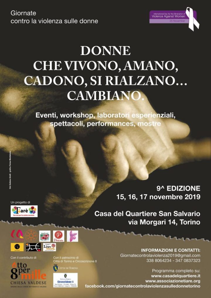 Per la realizzazione delle giornate contro la violenza sulle donne, l’Associazione Tiarè quest’anno si avvale della collaborazione, oltre che dall’Agenzia dello Sviluppo di San Salvario presente tutti gli anni, di altre associazioni operanti all’interno della Casa del Quartiere- Il Cerchio degli uomini, Amaryllis Onlus, Donne Resilienti e Pentesilea e da – Concorso letterario nazionale Lingua Madre, La Cooperativa Sociale Poiesis- Centro Torinese di Terapia della Gestalt, Pentesilea, Maigret & Magritte, dalle Coreografe e danzatrici Paola Colonna e Gabriella Cerritelli, e da professionisti delle relazioni d’aiuto e del sostegno dell’Otto per Mille della Chiesa Valdese e con il patrocino del Comune di Torino e della 8° Circoscrizione Torino.
