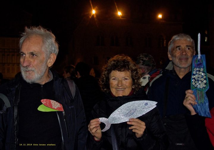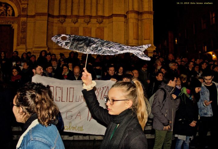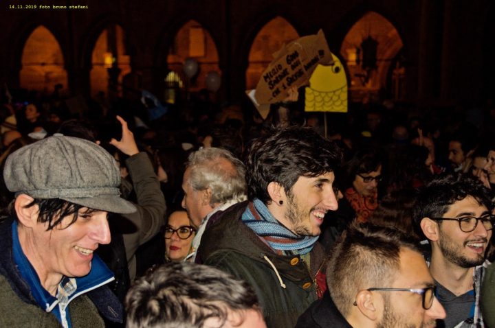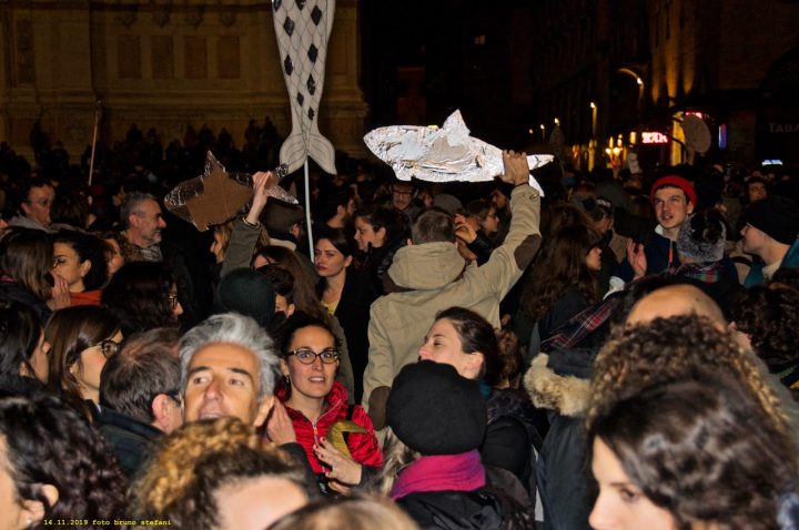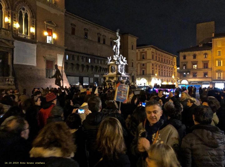 Bruno Stefani ci ha mandato le sue belle foto di gente della piazza bolognese e alcune ricghe che vogliono essere una sorta di manifesto delle sardine bolognesi, diverso ma complementare a quello che abbiamo pubblicato ieri.