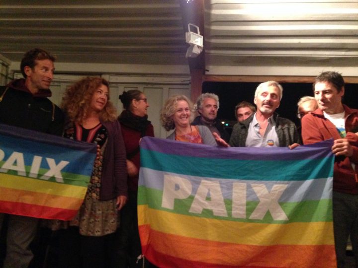 Siamo arrivati a mani vuote ma in compenso con una fame da lupi e facciamo onore ai piatti degli altri che sono davvero buoni. Davanti al buffet ci conosciamo: si parla della Marcia, dei nostri primi giorni di navigazione, della situazione in Mediterraneo, dei migranti e di come anche a Marsiglia l’onda di intolleranza cresca continuamente (la città è la sede operativa di SOS Mediterranee) ma anche dell’esperienza di una pratica pacifista e nonviolenta che nasce da dentro, da una ricerca interiore. Può sembrare una scelta troppo intimista in un mondo attraversato da venti di guerra. Non è così. La scelta della nonviolenza è una scelta radicale che richiede coerenza tra il dentro di sé e il fuori da sé. Fare pace con se stessi per essere in pace con il mondo e nel mondo. Marie, ad esempio, ha scelto di usare il canto come strumento di pace. Cantare per la pace, cantare insieme ascoltando gli altri per poter unire le voci. E così facciamo: cantiamo, parliamo e ascoltiamo le esperienze degli altri.