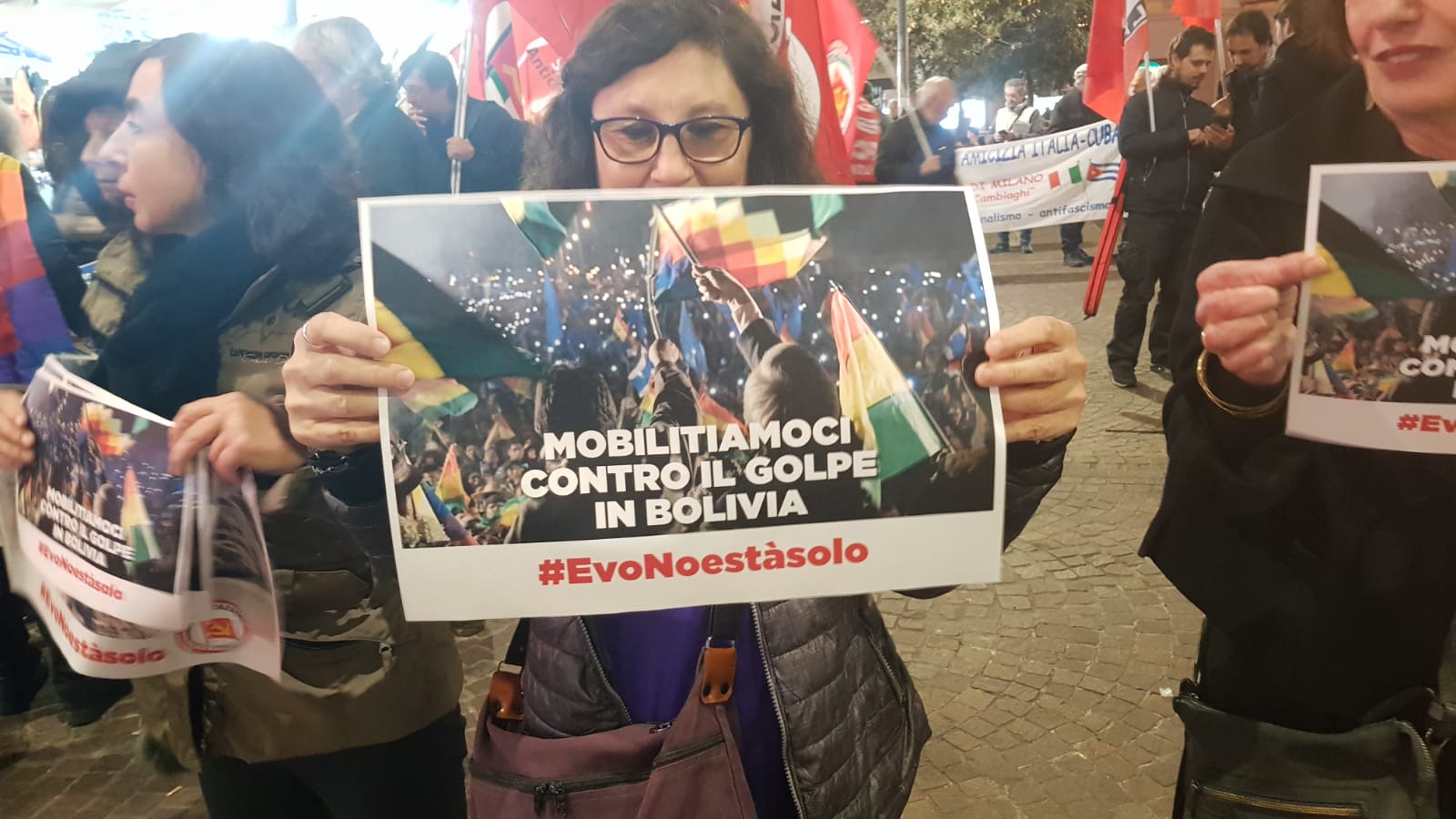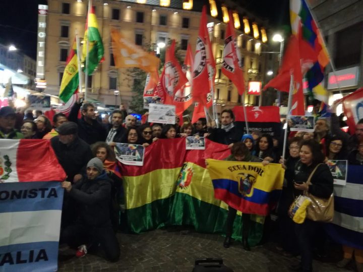 Varie centinaia di persone hanno partecipato oggi pomeriggio in piazza Lima, vicino al Consolato dello Stato Plurinazionale della Bolivia, al presidio di solidarietà con il popolo boliviano, esprimendo il loro pieno sostegno al legittimo Presidente Evo Morales, chiedendo il rispetto dei risultati elettorali e denunciando la violenza dei golpisti.