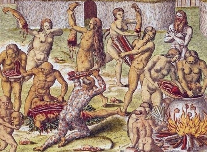Quello che i missionari non potevano concepire era il legame tra la vittima sacrificale e il suo carnefice. Attraverso il suo gesto, il prigioniero di guerra… (le guerre indigene non avvenivano mai per questioni territoriali, ma per vendicarsi di offese ricevute) avrebbe avuto la possibilità di affermarsi sia come individuo che come signore del Tempo: invocando future vendette – “mi mangerai, come io ho mangiato i tuoi parenti; mi mangerai così come sarai mangiato dai miei” – Il futuro, il passato e il presente, riuniti nell’atto dell’uccisione del prigioniero, avrebbero potuto continuare il loro corso, non più distinti, separati e inconciliabili, ma come memoria viva di un presente che verrà. Il guerriero ucciso nel rituale veniva smembrato e cucinato e servito a tutti ad eccezione del suo uccisore che si sarebbe ritirato in isolamento per una settimana. Terminato il raccoglimento, avrebbe assunto il nome della sua vittima, sarebbe diventato un “non-io”, l’altro.