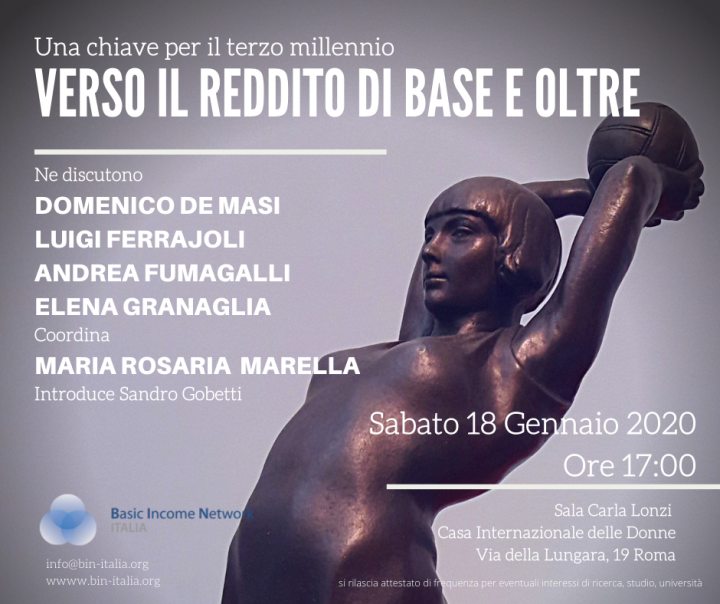 Sabato 18 Gennaio 2020, presso la Casa Internazionale delle Donne in Via della Lungara 19 a Roma, Sala Carla Lonzi, dalle ore 17:00 incontro dal titolo “Verso il reddito di base e oltre. Una chiave per il terzo millennio“.