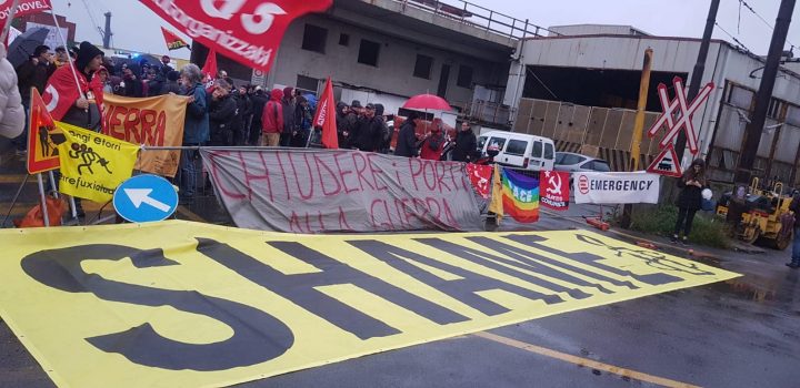 La protesta ha toccato in queste settimane diverse porti europei, a partire da Bilbao con la campagna basca “La guerra empieza aquì (la guerra inizia qui)” e ha coinvolto anche Catania, dove oggi si è tenuto un flash mob nel porto di fronte alla nave CP 941 Diciotti. Come spiegato in un post della Rete Antirazzista Catanese, gli attivisti in divisa militare hanno costruito una “Barhi Yanbu” in cartone, al cui interno c’erano scatole piene di armi, mentre altri mostravano lo striscione “Porti chiusi alla guerra e aperti ai migranti”, per poi distruggere simbolicamente i cartoni con le armi e la nave della morte.