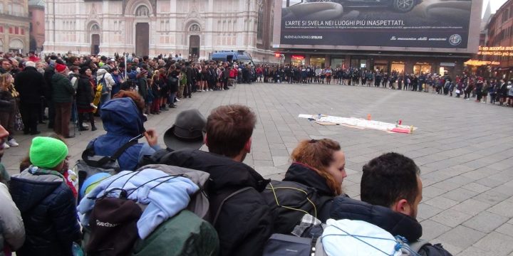 A Bologna in piazza Maggiore nel pomeriggio di Domenica 2 febbraio si è svolto un Flash Mob contro le mafie promosso dagli scout di AGESCI Bologna e da Libera Bologna.