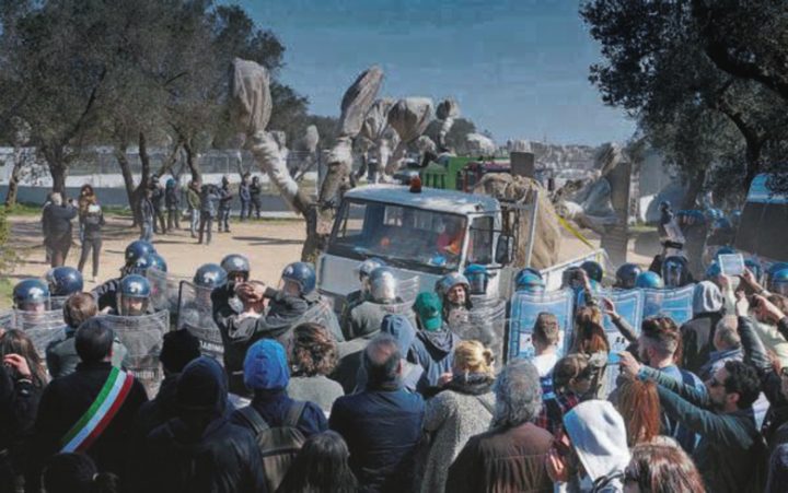 [6] SNAM ha già picchettato o recintato parte della porzione brindisina del gasdotto di interconnessione TAP/SNAM. Etichettati anche gli 8603 ulivi del percorso, di cui metà di medie dimensioni e oltre 300 ulivi monumentali.