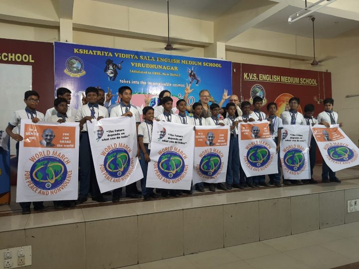 Il 2 e 3 febbraio alcuni membri della equipe base (coloro che fisicamente portano la bandiera della Marcia Mondiale per la pace e la nonviolenza da un paese all’altro) si sono recati presso 2 complessi scolastici del Tamil Nadu in India nei villaggi di Virudhunagar e Sathankulam.