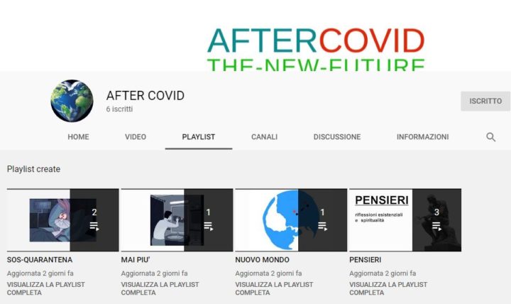 In questo canale ci sono 4 playlist – SOS QUARANTENA, PENSIERI, MONDO NUOVO e MAI PIU’ – nelle quali si possono inserire dei video brevi, realizzati in modo totalmente artigianale. Chiunque può collaborare e inviare i video, contattando prima il canale, se si riconosce nel suo contesto e nelle sue intenzioni. Per il momento il canale è in italiano ma è possibile inserire sottotitoli e pubblicare video anche in altre lingue.