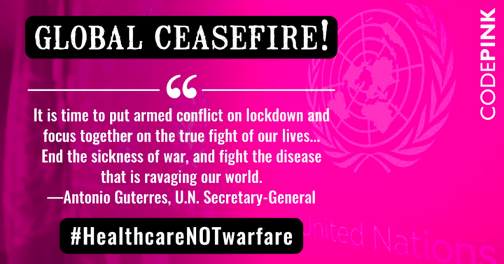 Almeno 70 paesi hanno aderito all’appello lanciato il 23 marzo dal Segretario Generale dell’Onu Antonio Guterres per un cessate il fuoco mondiale durante la pandemia di Covid-19. Come gli affari non essenziali e gli sport molto popolari, la guerra è un lusso di cui secondo il Segretario Generale dobbiamo fare a meno per un po’. Dopo che i leader statunitensi hanno detto per anni agli americani che la guerra è un male necessario o addirittura una soluzione a molti dei nostri problemi, Guterres ci ricorda che la guerra è davvero il male più superfluo e un vizio che il mondo non può tollerare, soprattutto durante una pandemia.