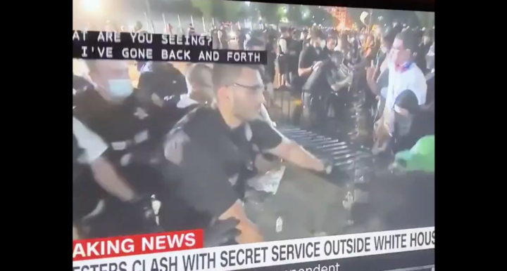 “Follia fuori dalla Casa Bianca”, ha twittato Alejandro Alvarez, un giornalista digitale della radio WTOP News, pubblicando filmati della scena poco dopo le 17:30 (ora europea). “I Servizi Segreti hanno dato tre avvertimenti di assembramento illegale prima di assaltare la folla. Molte persone sono state colpite con spray al peperoncino. Nel caos, una persona è stata gettata a terra e presumibilmente arrestata”.