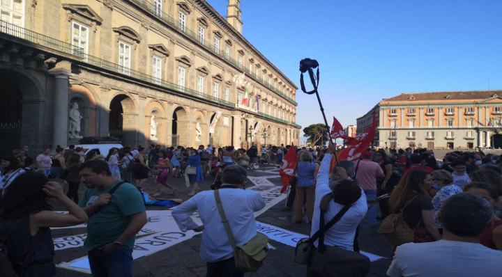 A Napoli l’incontro ha avuto luogo in Piazza del Plebiscito all’orario previsto. La manifestazione, per quanto possibile, si è svolta nel rispetto delle regole di distanziamento ed erano presenti più di cento persone tra insegnanti, studenti e genitori.