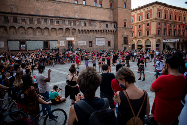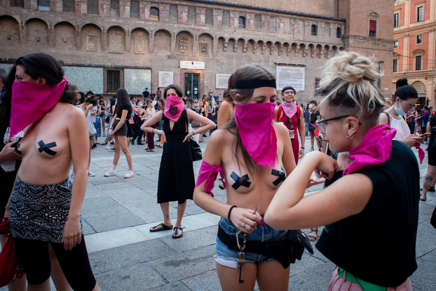 Il presidio è cominciato in Piazza del Nettuno alle 18.30 ed è terminato intorno alle 21. In piazza qualche centinaia di persone e moltissim* attivist*. Come ormai di tradizione in questa fase, i presenti hanno rispettato le distanze di sicurezze e indossato le mascherine. Le e gli attivist* hanno indossato il classico fazzoletto rosa, diventato ormai simbolo del movimento. Ci sono state diverse testimonianze di emarginazione subite durante la quarantena: le sex worker hanno denunciato la loro assenza da ogni piano di assistenza, reclamando regolarizzazione. Fulcro centrale del presidio la condizione della donna, peggiorata durante il lockdown. Infatti la scia di sangue dei femminicidi non si è fermata. Per questo è stata riproposta la ormai celebre coreografia “el violador eres tu”.