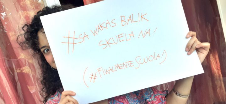 Per questo sostengo la campagna #FinalmenteScuola: un invito a raccontare e condividere questo momento così importante per bambini, bambine, genitori e insegnanti. Questo il senso dell’iniziativa che abbiamo lanciato a livello nazionale, nata dalla collaborazione di reti, enti e associazioni di varie parti di Italia che si rivolge alle famiglie, ai presidi, agli insegnanti, al personale ATA e a tutti i cittadini.
