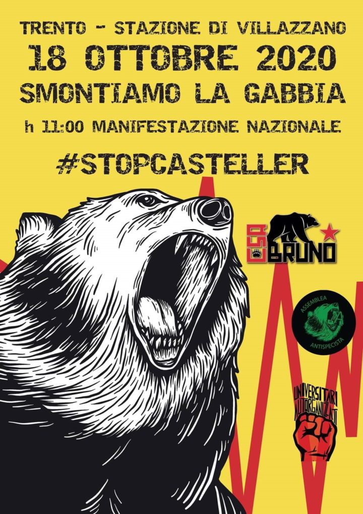 Oltre alla vita di M49 anche quelle di M57 e di DJ3 sono diventate un vero e proprio supplizio che non si può più tollerare. DJ3, figlia dell’orsa Daniza (più tristemente nota nella mala gestione della provincia di Trento) è reclusa da ben 9 anni, mentre M57 è riuscito a trascorrere solo due anni della sua vita in libertà prima di essere imprigionato. Ma in conseguenza di quali colpe è stato deciso che la coercizione fisica di questi animali fosse necessaria? Attraverso la retorica della “pericolosità” Fugatti ha condannato alla reclusione al Casteller anche un numero imprecisato di orsi, quelli che, secondo la sua ordinanza, si aggirano nei pressi degli abitati di Andalo e Dimaro Folgarida: un’ordinanza di cui è già stato chiesto l’immediato ritiro, poiché condannerebbe gli orsi ad una vita da ergastolani. È notizia di questi giorni che le condizioni psico-fisiche dei tre plantigradi sono state definite “inaccettabili” persino dagli organi di controllo istituzionali che, come da copione, propongono per voce delle associazioni veterinarie la costituzione di “comitati etici” per ripulirsi la faccia con la solita favola del “benessere animale”. Gli attivisti antispecisti hanno affermato di riconoscere, nell’operato della Giunta Fugatti, le stesse politiche repressive nei confronti di tutti quei “corpi indecorosi ed eccedenti, che varcano confini ed esprimono volontà di autodeterminazione, che mille volte abbiamo visto all’opera nei più disparati contesti di resistenza”. Ma la critica è più ampia, sottolineando come “la classe politica che ha governato il Trentino ha più volte dimostrato tutti i limiti e l’ipocrisia di un’impostazione antropocentrica rispetto alla convivenza con gli altri animali”. Basti pensare che la stessa giunta leghista, che nel 2011 organizzava banchetti a base di carne d’orso, ha affidato la gestione (crudele e fallimentare) della struttura-lager di Casteller interamente all’Associazione dei Cacciatori Trentini. Per questi motivi, Centro Sociale Autogestito Bruno, Assemblea Antispecista e Universitari Autorganizzati hanno indetto per il 18 ottobre la manifestazione nazionale STOP CASTELLER – SMONTIAMO LA GABBIA a Trento per chiedere la liberazione immediata di M49, M57 e DJ3, il sequestro della struttura e la liberazione immediata di tutti i plantigradi. Forme di proteste sono già partite il 21 settembre con la dichiarazione dello sciopero della fame da parte delle attiviste Stefania Sbarra e Barbara Nosari per gli orsi trentini dichiarando “una lotta a oltranza per liberare gli animali in prigionia”. Gli organizzatori della manifestazione hanno fatto appello a tutte le soggettività e i collettivi impegnati nelle lotte ecotransfemministe, antirazziste, antifasciste, antispeciste, ambientaliste e anticapitaliste per la giustizia climatica. Come hanno scritto gli organizzatori sulle pagine social, solo l’intersezione di tutte queste lotte può ambire a scardinare “il paradigma proprietario del capitalismo antropocentrico”. È ora di smettere di pensare che gli altri animali siano creature senza voce, per le quali è necessario usare la nostra. Come ha affermato Francesco De Giorgio, etologo antispecista: “Abbiamo bisogno di scritti, voci e azioni coraggiose, che sappiano muoversi oltre il filo spinato dello specismo, che sappiano non prostrarsi ad una presunta unica realtà, che sappiano anche fare liberazione animale attraverso una logica animale, che non siano appassionati di animali ma titolari di una resistenza nel nome dell’Animalità. Perché estrema ed estremista non è la resistenza, ma l’oppressione.”