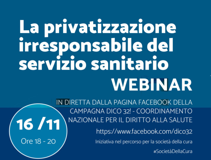Il webinar può essere seguito in diretta su queste pagine facebook: https://www.facebook.com/dico32 – https://www.facebook.com/MedicinaDemocratica