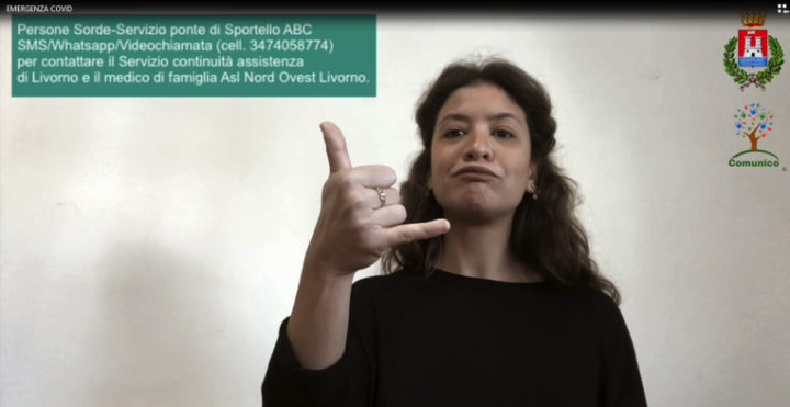 Con una sola variante, così come spiega Assunta Vania Vitolo presidente dell’associazione Comunico: “Nella prima parte del video nella quale si indica chi contattare in caso di febbre o di altri sintomi riconducibili al Covid, contatti a cui una persona sorda non può accedere abbiamo inserito il riferimento al servizio ponte di sportello ABC che tramite un sms, un messaggio whatsapp o una videochiamata al numero 3474058774 dà la possibilità a chi è sordo di contattare il servizio continuità assistenziale di Livorno e il medico di famiglia. Numero che allo stesso tempo può essere usato anche da chi necessita di mettersi in contatto con un sordo”.