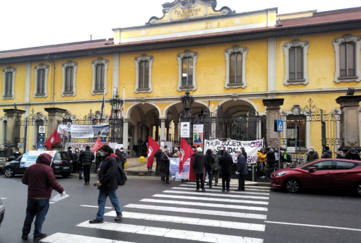 Un presidio del Comitato di difesa della sanità pubblica di Milano, zona sud-ovest. Una cinquantina di persone stendono tanti striscioni, la parole sono grandi e forti, la denuncia è decisa. Cercano di dare voce alle proteste dei lavoratori e delle lavoratrici che in questa RSA, come negli ospedali San Carlo e San Paolo, hanno denunciato la pessima gestione di queste strutture. Fin dall’inizio, da febbraio, chi lavorava qui al Trivulzio aveva detto: “Ma qui non ci danno niente…”.