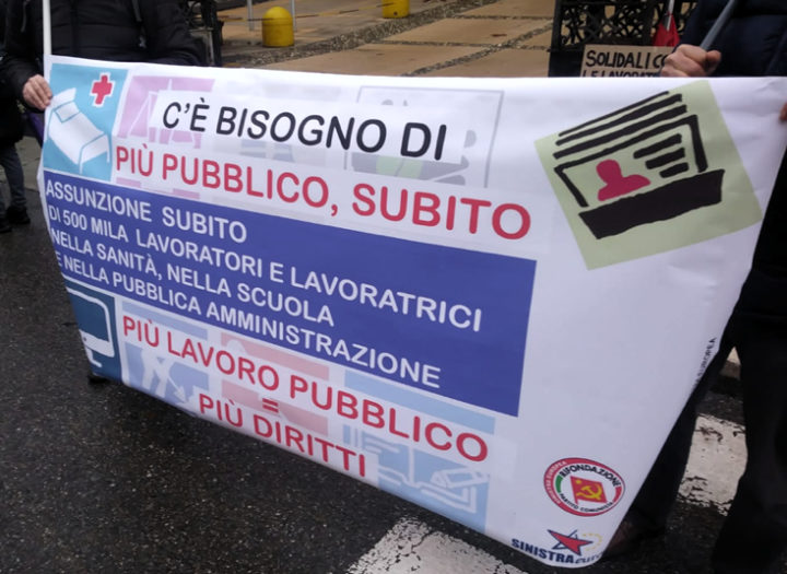 Difficile mettere insieme i lavoratori e le lavoratrici, la paura è probabilmente tanta. Così sono soprattutto militanti dai capelli grigi che non temono pioggia e freddo e che sono qui, a ricordare cosa è la giustizia, cosa sono i diritti, cos’è la salute, cos’è la sanità pubblica. Di battaglie ne hanno fatte tante, ma non cedono. Ricordano che lunedì 14 ci sarà uno sciopero presso gli ospedali San Carlo e San Paolo, due strutture che, prima del Covid, sembravano vicine alla chiusura e che invece hanno dimostrato quanto la sanità pubblica sia centrale, indispensabile.