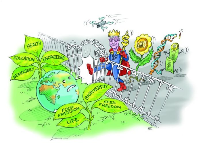 Organizzazioni e società che si coprono di filantropia per aprire altri mercati e che rientrano nel contesto neoliberista delle politiche di aggiustamento post-strutturale che hanno lasciato atrofizzati gli stati del Sud del mondo, della costante diminuzione dei fondi delle istituzioni internazionali dopo la fine della Guerra Fredda nel Nord del mondo, in cui la porta è stata lasciata spalancata alla ‘generosità’ di Gates per rinvigorire la scena internazionale e spegnere la sete di capitali tanto necessari. Una strategia di sviluppo basata su un consenso imposto in modo aggressivo, attraverso un’influenza diretta su tutti gli attori del colosso dello sviluppo globale comprese istituzioni internazionali, università e centri scientifici e di ricerca internazionali, società private, Stati e sulla mentalità che qualsiasi problema può (e deve unicamente) essere risolto attraverso la tecnologia, l’innovazione, l’ingegneria e le regole del mercato privato. Questo vale per tutte le aree toccate dalla Fondazione Bill e Melinda Gates, da settori come l’alimentazione e l’agricoltura, alla salute, ai cambiamenti climatici, all’istruzione e ai media.