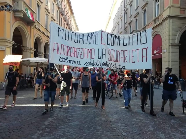 Anche durante il periodo pandemico, vi sono state molte iniziative di solidarietà. Tra queste vi è sicuramente la Colonna Solidale Autogestita, nata principalmente dall’iniziativa intrapresa dal Centro sociale Vag 61 e dal Circolo Anarchico Berneri. In poco tempo, grazie anche alla collaborazione con altre realtà territoriali, hanno costituito uno spazio di mutuo aiuto e mutuo soccorso e di solidarietà.