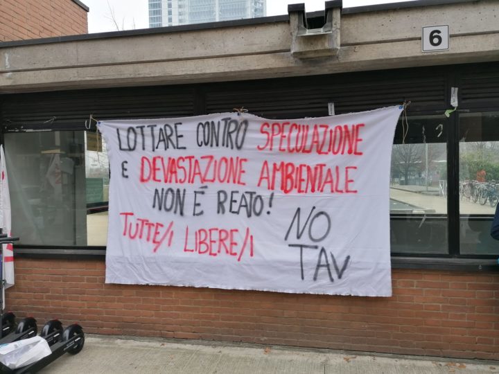 Il movimento Notav è in presidio dalle 9 di stamattina sotto il Tribunale di Torino in attesa della sentenza del  Maxi processo contro 56 notav, che il 27 Giugno ed il 3 Luglio del 2011 si opposero allo sgombero della Libera Repubblica della Maddalena sul sito dell’attuale cantiere di Chiomonte.