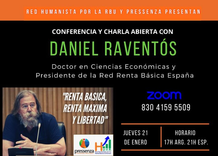 Il prossimo 21 gennaio 2021, alle 21, (ora europea) avrà luogo un incontro online nel quale Raventós Pañella, dottore in economia, professore presso l’Università di Barcellona e presidente della Red Renta Básica darà una conferenza dal titolo “Reddito di base, reddito massimo e libertà”. All’incontro seguirà una discussione con i partecipanti, che potranno fare domande all’economista catalano in diretta o attraverso le reti