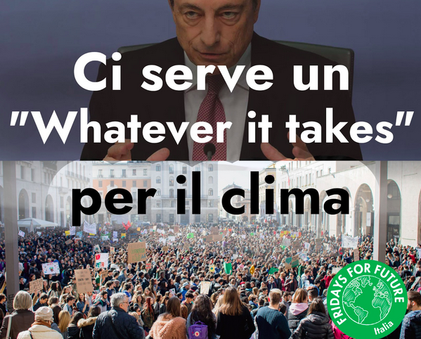 Abbiamo scritto un messaggio al prof. Draghi: in questo anno in cui l’Italia è chiamata a fare la storia, la transizione ecologica è non solo un dovere imprescindibile per difendere i diritti delle future generazioni – cari al presidente incaricato – ma è anche la più grande opportunità per risollevare l’economia e creare nuovo lavoro. E gli investimenti necessari devono essere portati avanti ad ogni costo, “whatever it takes”.