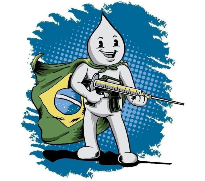 Le prime parole del discorso di Lula alla nazione, in seguito all’annullamento del processo e delle conseguenti condanne subite, sono dirette ed enfatiche: Dov’è Zé Gotinha? Domanda il vecchio leader. Dov’è Zé Gotinha?… La simpatica mascotte, sempre presente in ogni evento sanitario di massa, da quando Bolsonaro è diventato presidente, non si è più vista. Il governo, dopo l’immensa ripercussione delle parole di Lula, corre ai ripari e rilancia l’immagine del pupazzo con un nuovo slogan: “adesso la nostra arma è il vaccino”. Zé Gotinha, da amico dei bambini che era, nelle mani di Bolsonaro si trasforma in un truce miliziano, un guerriero, un giustiziere con tanto di mantello. Tra le mani, un mitra a forma di siringa, o meglio, una siringa in forma di mitra. Zé Gotinha trasformato in maniaco assassino. L’indignazione è al massimo. La nuova immagine viene prontamente ritirata dalla circolazione, ma il danno è fatto. Maledetti.