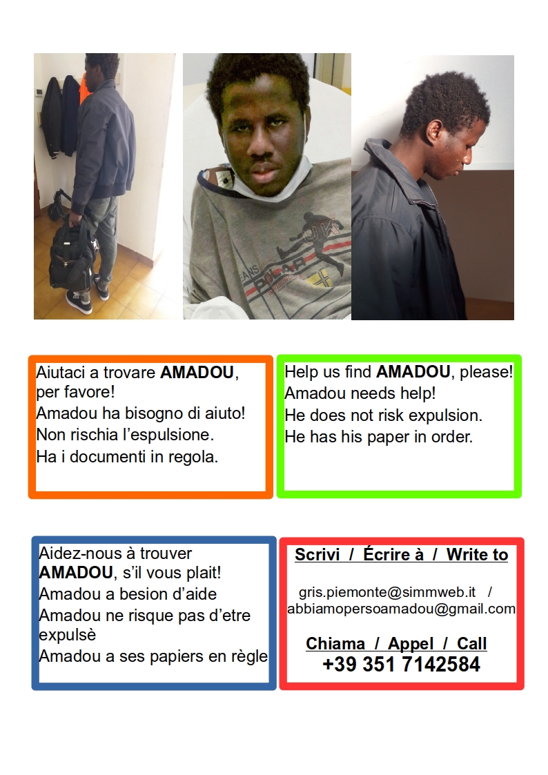 Amadou, di cui si sono perse le tracce il 16 marzo, nonostante i molti tentativi per ritrovarlo è tutt’ora scomparso