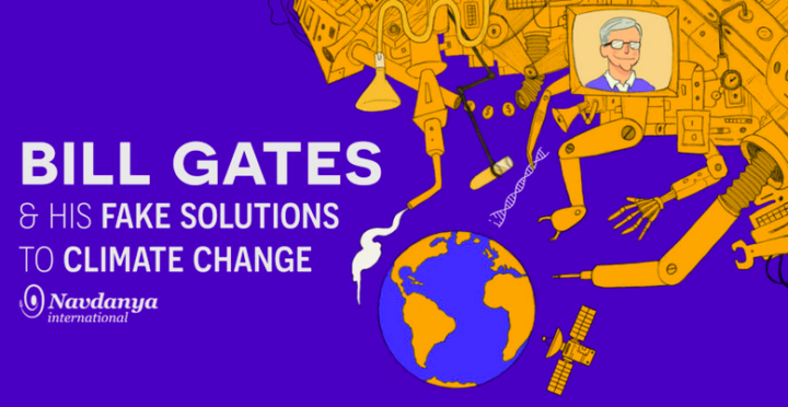 Nella visione di Bill Gates, la tecnologia sembra destinata a rimediare ad ogni singolo danno inflitto al nostro pianeta. Il cambiamento climatico è stato recentemente aggiunto alla lista. Eppure questa mentalità è la stessa che ci ha portato allo stadio di devastazione in cui ci troviamo attualmente, laddove l’unica cosa che migliora in modo esponenziale sono i profitti delle multinazionali, le quali sanno come approfittare delle crisi, vendendo queste tecnologie. È necessario uscire da questa isteria tecnologica per recuperare una visione olistica basata su veri agricoltori, cibo sano e nutriente, e su un modello agroecologico che non impatti sul clima ma che, al contrario, aiuti a mitigarlo. Nessun falso hamburger può farlo. L’ultimo rapporto di Navdanya International, “Bill Gates & his Fake solutions to Climate Change (Bill Gates & le sue false soluzioni al cambiamento climatico)”, illustra in dettaglio le ragioni dietro ai tentativi di Bill e Melinda Gates di concentrare il dibattito su tecnologie miracolose e quali siano i veri interessi dietro la propaganda.