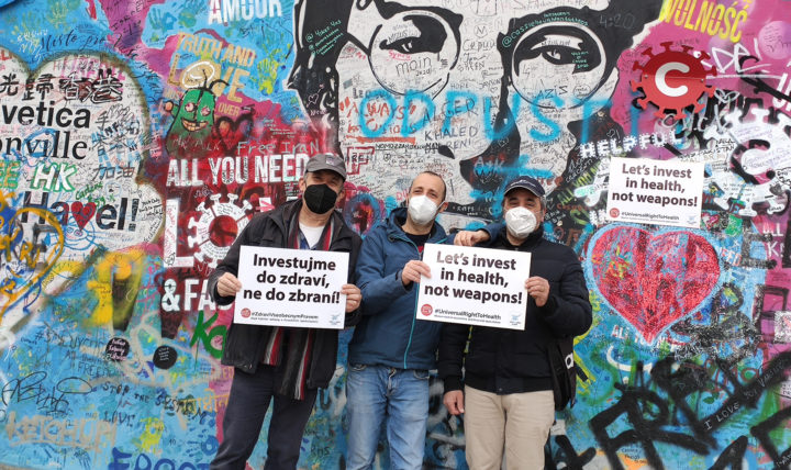 Mondo senza guerre e senza violenza chiede di investire nella salute, non nelle armi. In Repubblica Ceca i morti da Covid sono quasi 30.000, come in Lombardia, che ha una popolazione più o meno uguale. L’iniziativa si è svolta presso il murale dedicato a John Lennon, che dopo la rivoluzione del 1989 è diventato un simbolo di pace e libertà.