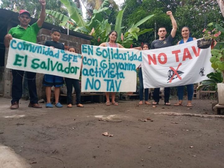 Ricevo dal mio caro amico Valerio della Val di Susa una foto: arriva da El Salvador e si vede uno striscione di solidarietà con Giovanna, ferita nei giorni scorsi da un candelotto sparato dalla polizia.