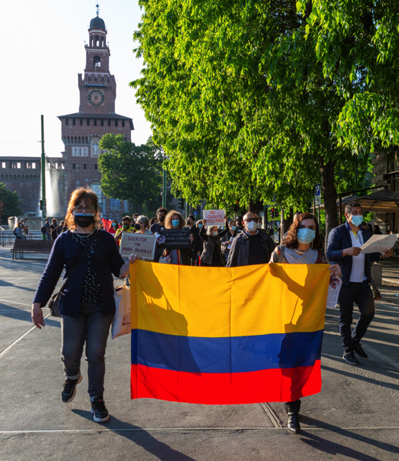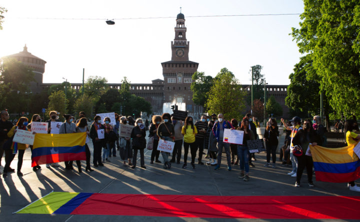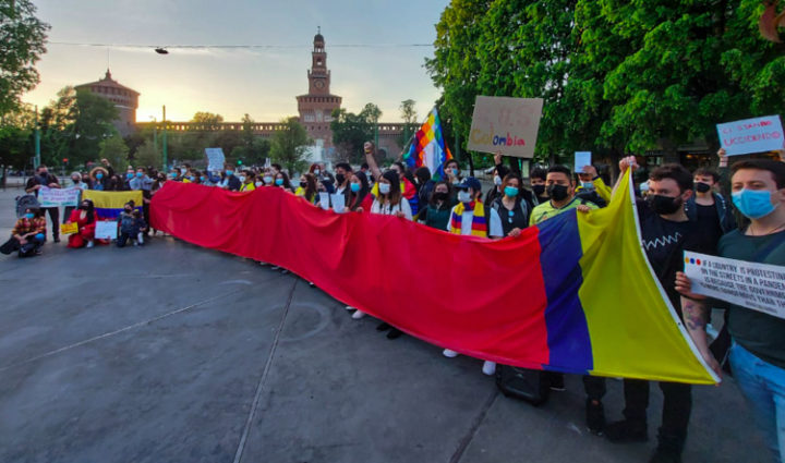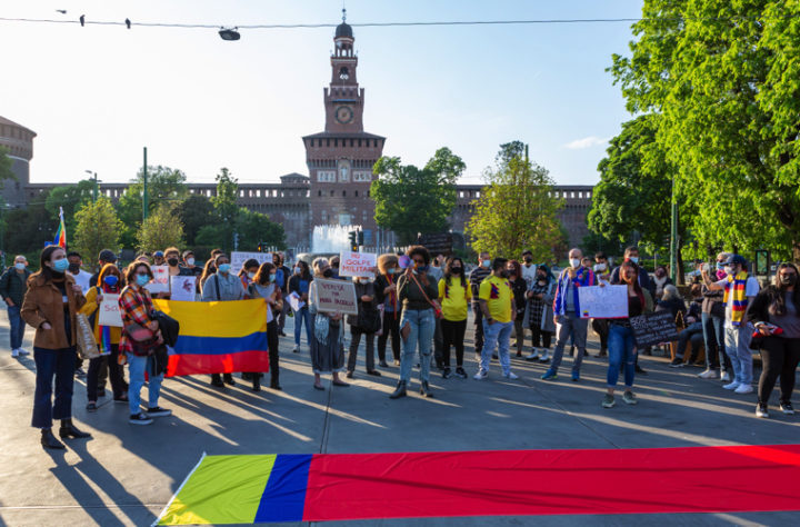 A Milano si è svolta una manifestazione a sostegno del popolo colombiano: almeno un’ottantina i partecipanti al presidio di oggi, mercoledì 5 maggio. Non solo colombiani, ma anche ecuadoregni, cileni, peruviani, curdi e italiani sensibili a quello che avviene nel Paese fratello.