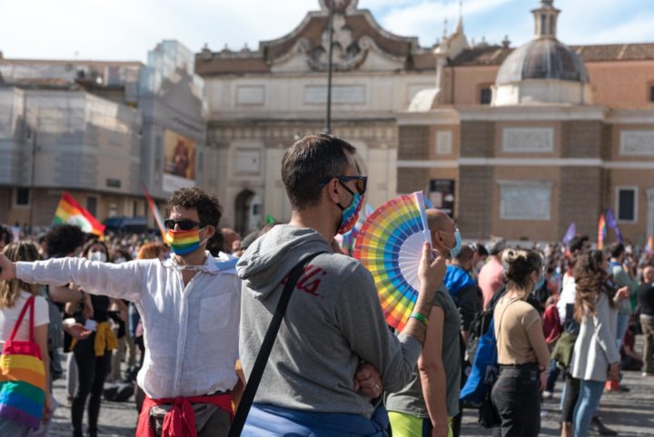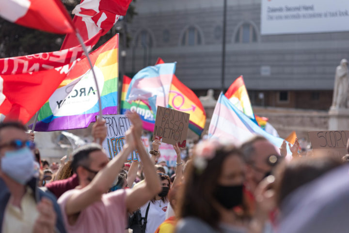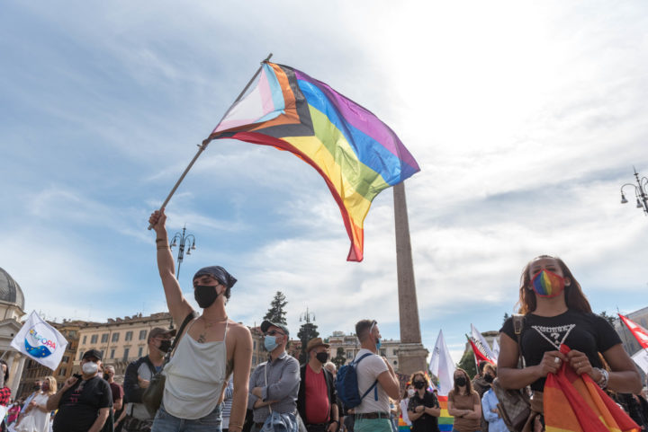 Roma, 15 maggio 2021. A Piazza del Popolo oltre 120 associazioni provenienti da tutta Italia si sono mobilitate per sostenere l’approvazione del ddl Zan.