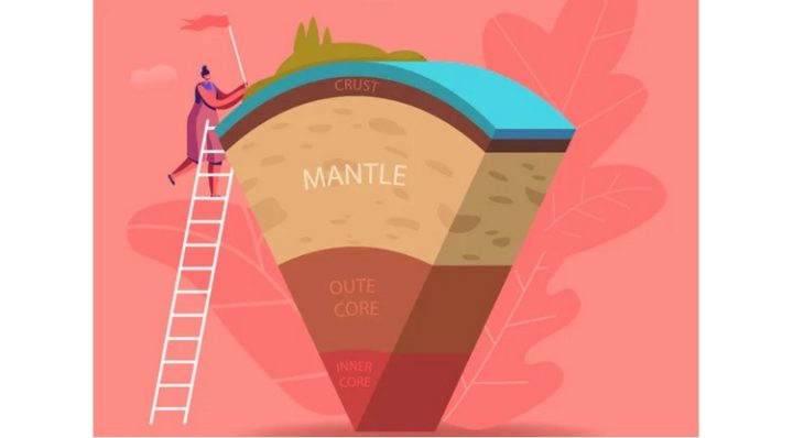 Il nucleo è anche la piastra riscaldante della stufa che riscalda lo strato che la circonda: il mantello terrestre. Il mantello è costituito da rocce che si muovono a una velocità simile a quella con cui crescono unghie e capelli. Come un piano cottura elettrico che riscalda una pentola d’acqua, il calore del nucleo genera correnti all’interno del mantello. Queste correnti salgono lentamente e, quando raggiungono circa 100 chilometri sotto i nostri piedi, la roccia si scioglie, producendo magmi che si fanno strada verso la superficie, formando così i vulcani. Tahiti, l’isola della Réunion, l’Islanda e le Hawaii sono aree vulcaniche generate dal riscaldamento del mantello da parte del nucleo. Il nucleo ci permette quindi di sognare paesaggi straordinari.