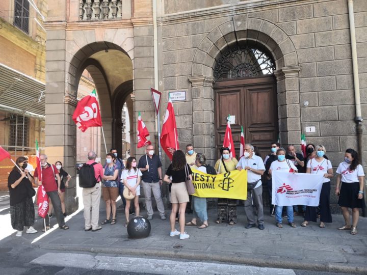 Anche a Bologna, (vedi foto) come in altre città (Roma, Milano,ecc.) un flash mob ieri pomeriggio davanti alla Prefettura contro il rinnovo degli accordi con la Libia per il respingimento di migranti.