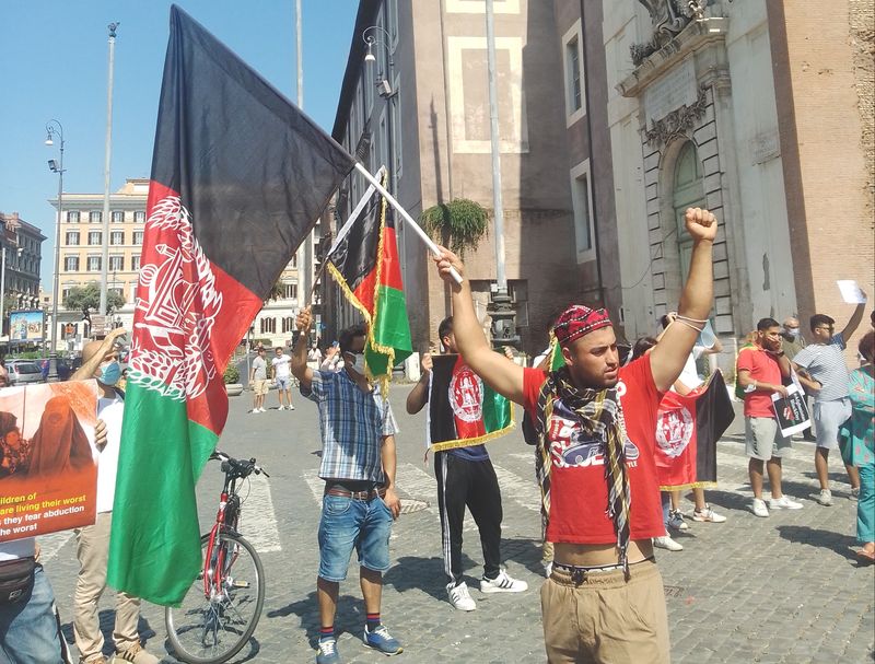 La comunità afghana in Italia ha convocato ieri a Roma in Piazza della Repubblica una manifestazione di sensibilizzazione contro la caduta del loro paese in mano ai talebani.