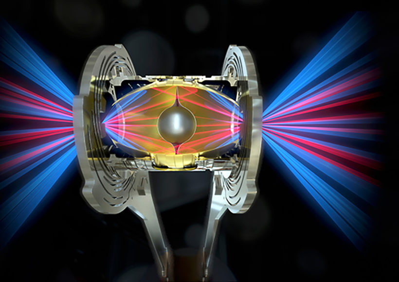 Per evitare la necessità di una precisione sub-millimetrica nella guida finale dei fasci laser sul bersaglio e per una sua illuminazione altamente uniforme a prevenire instabilità nell’implosione, a Livermore si impiega un approccio indiretto: la capsula contenente la miscela di deuterio e trizio è sospesa all’interno di un cilindretto cavo chiamato hohlraum, che diventa un vero e proprio “forno” a raggi X.