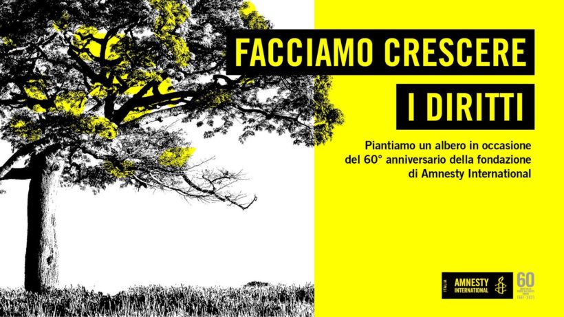 Per celebrare i 60 anni di Amnesty International ed i traguardi raggiunti in difesa dei diritti umani di tutto il mondo, sabato 16 ottobre alle ore 11 – al Parco Falcone e Borsellino di Legnano – si terrà una cerimonia di inaugurazione, alla presenza delle autorità comunali e degli attivisti volontari dell’associazione, durante la quale verrà piantato un albero donato dalla sezione italiana di Amnesty International.