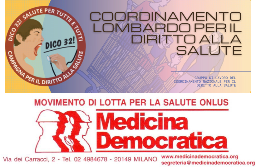 “La salute non si vende, la sanità pubblica si difende! Vogliamo un servizio pubblico universale, gratuito, partecipato e di qualità. Nessun profitto sulla nostra pelle”, questo lo slogan della manifestazione di sabato 23 ottobre in Piazza del Duomo a Milano, dalle 10,30 alle 13.00, promossa dalla Campagna Dico 32 con Medicina Democratica, a cui hanno aderito fino ad ora, oltre 50 organizzazioni della Lombardia attive in tutte le aree.