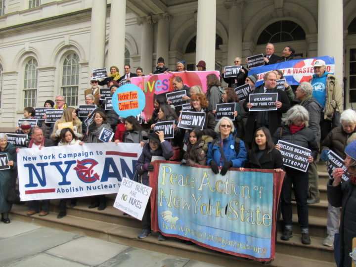 - New York City chiede al governo degli Stati Uniti di aderire al Trattato e di far disinvestire i Fondi Pensione pubblici dalle Società legate alle armi nucleari.