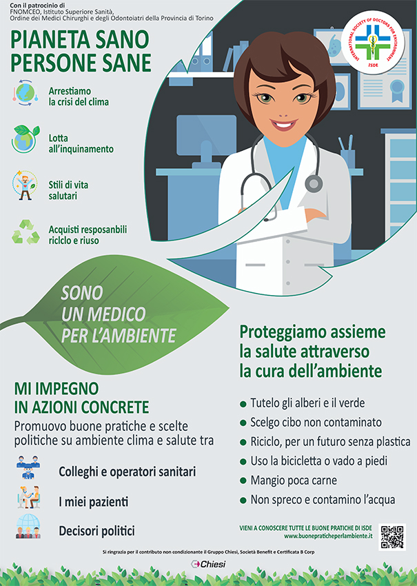 Sono stati preparati manifesti (in allegato) da affiggere negli studi medici di Torino e provincia, che l’Ordine mette a disposizione dei propri iscritti, ed è stato creato il portale www.buonepraticheperlambiente.it, a cura dell’Isde, che funge da punto di riferimento e di informazione della campagna. L’iniziativa ha il patrocinio dell’Istituto Superiore di Sanità oltre che di Fnomceo (la Federazione nazionale degli Ordini dei medici) e dell’Ordine di Torino.
