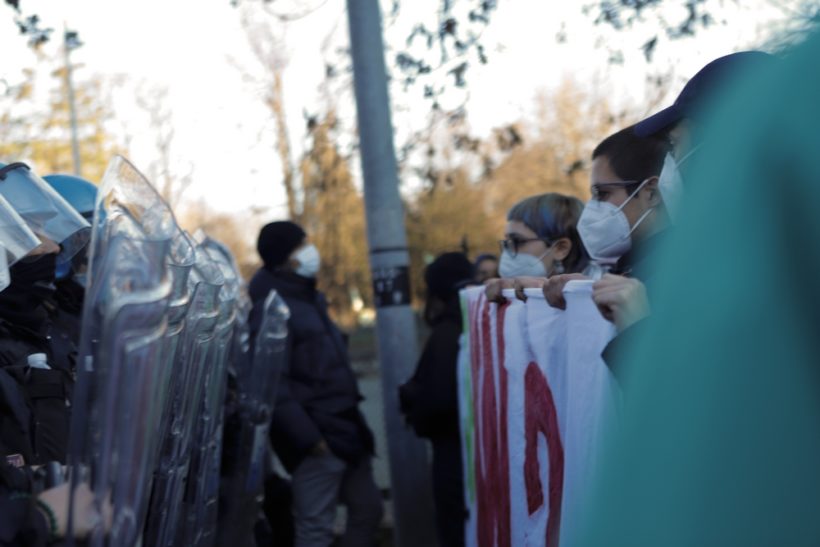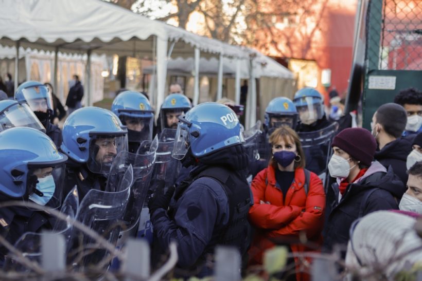 Ieri infatti avrebbe dovuto tenersi una passeggiata informativa in quartiere con partenza dall’Associanzione culturale Comala, ma fin da subito i reparti della celere hanno bloccato il corteo con spinte e manganellate. Abbiamo trovato davanti a noi una militarizzazione del quartiere assurda e sconsiderata. La celere ha chiuso e sequestrato per ore i manifestanti e chi si trovava all’interno dell’aula studio in una via stretta, chiusa in testa e coda da due loro squadre e senza vie di fuga, mentre continue cariche ammassavano le persone creando così una situazione molto pericolosa.