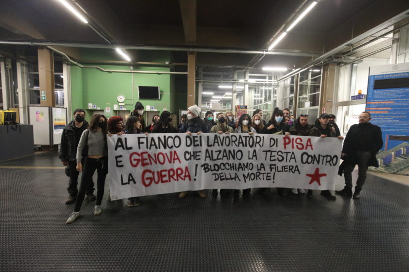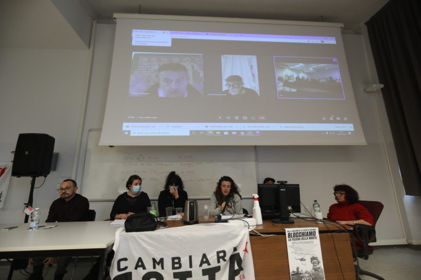 Jose del CALP (Collettivo Autonomo Lavoratori Portuali di Genova) ha raccontato la loro esperienza nel contrasto alla logistica delle armi. Hanno usato lo strumento dei lavoratori: lo sciopero, sottraendosi ad un meccanismo fondamentale della filiera degli armamenti, il trasporto. Per questo sono stati inquisiti. Ha anche parlato dei lavoratori aeroportuali di Pisa, che si sono sottratti dal caricare imballaggi che contenevano materiale bellico senza che ciò fosse indicato, fatti transitare in un gate di carico civile, nonostante l’aeroporto di Pisa abbia un’area destinata alla 46ª Brigata Aerea dell’Aeronautica Militare. Questi imballaggi contenenti materiale bellico, spediti in modo del tutto non trasparente, avrebbero dovuto essere caricati su un cargo civile da personale civile privo di competenze nel gestire tale materiale. Sorge spontanea la domanda: è solo questo carico che è stato spedito con queste modalità o e l’unico del quale ci si è accorti?